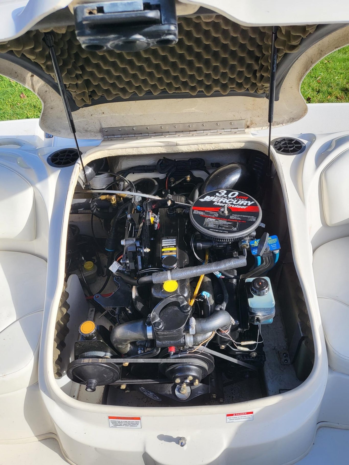 This Sea Ray has been very well maintained. It is 17.5-foot bowrider powered by a 135-horsepower, 3.0L MerCruiser sterndrive engine, commonly reaching speeds around 45 mph . It is a popular, entry-level boat designed for watersports and family cruising, featuring a 7-person capacity, fiberglass floor