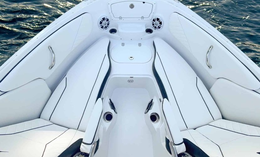 Our all-new 23 OSX is our latest outboard-powered sport boat, featuring a beam of 100" and an overall length of 23' 5". With dual bucket seats, oversized cupholders, a removable 25 qt Igloo cooler, and so much more, this model is perfect for a day on the water with you and your crew. Step aboard to experience the style, performance, and comfort Stingray is known for. |